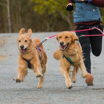 Canicross is running cross country with your dog. The difference between canicross and just regular trail running your dog, is that canicross is powered by the dog! Special harnesses are used to allow the dog to have optimal and comfortable pulling. Dogs are connected by a bungee lead: no longer than 6 feet, which is then attached to a special running belt on their owner. The belt and bungee lead allow for shock absorbency and keep the owner from any back injury.
